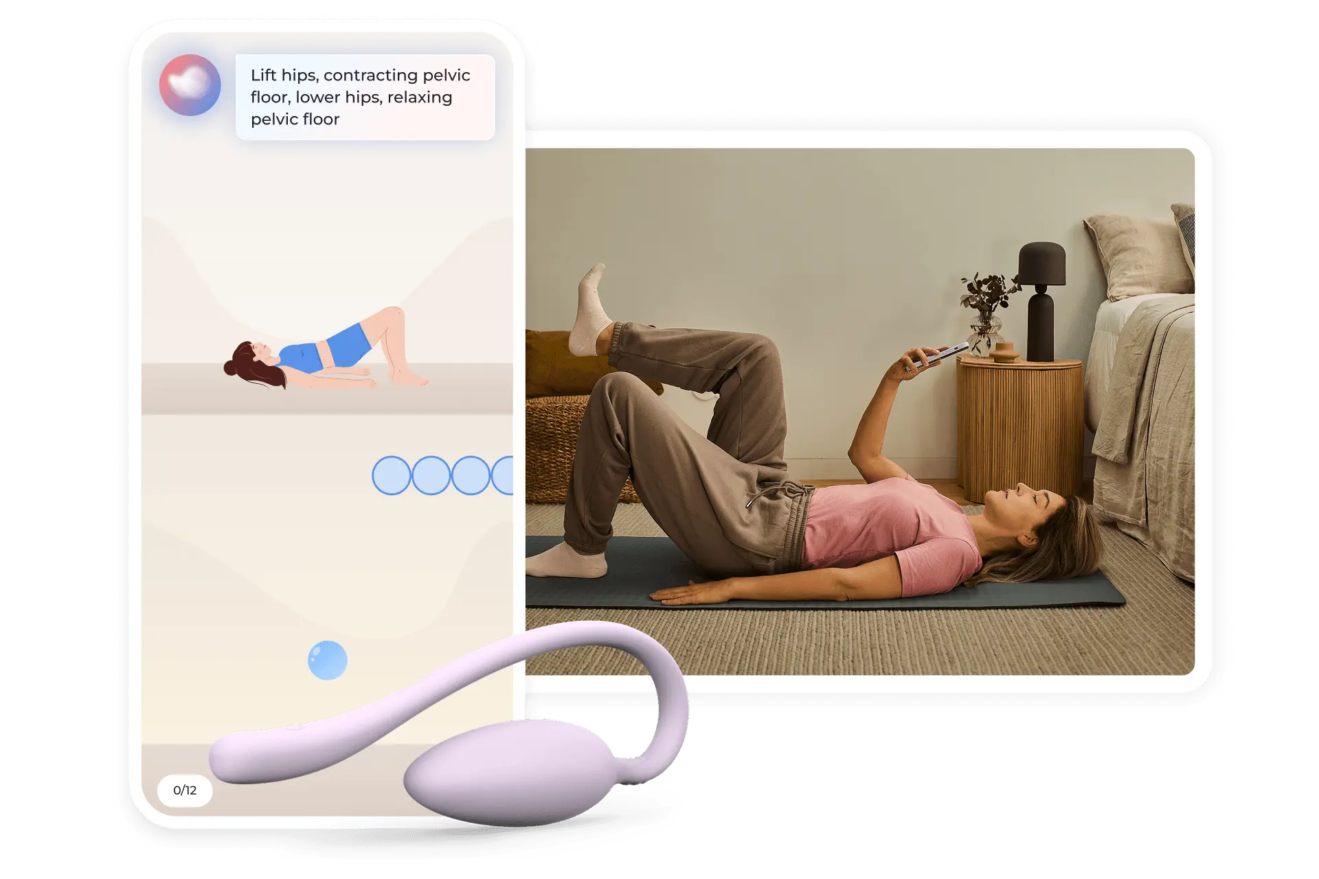 Use the Bloom intravaginal Pod to track pelvic floor muscle contraction and relaxation, and get real-time feedback and results.